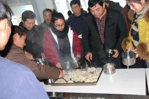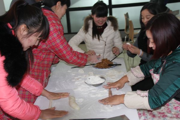 我公司領(lǐng)導(dǎo)組織各部門人員以及一線工人,弘揚(yáng)毛主席“自己動(dòng)手,豐衣足食”的作風(fēng),東起全體員工自己動(dòng)手包餃子。在公司領(lǐng)導(dǎo)的組織下,大家開始有秩序的進(jìn)行準(zhǔn)備工作,系上圍裙,有的和面、有的搟皮、有的做餃子餡。大家分開兩撥,這邊和面,那邊飽餃子,氣氛很活躍。同事們以迅雷不及掩耳之勢完成了準(zhǔn)備工作,準(zhǔn)備工作完成后,進(jìn)入包餃子階段,雖然很多同事不怎么會(huì)包餃子,但是在別人的幫助下很快進(jìn)入狀態(tài)??粗粋€(gè)個(gè)新鮮出爐的餃子,同事們的表情非常精彩,相互調(diào)侃的的話也漸漸多起來,包餃子工程進(jìn)入***階段,氣氛一時(shí)異?;馃幔粗聜円粋€(gè)個(gè)熱情洋溢的表情,一盤盤“奇形怪狀”的餃子真是羨煞旁人!